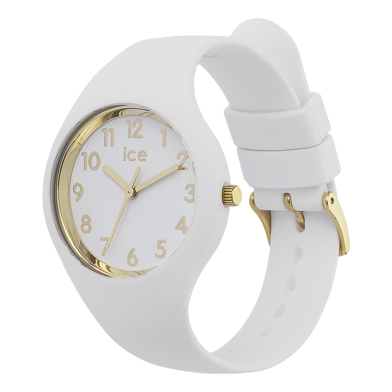 Ice Watch Ice Glam - IW014759 Dit dames horloge uit de Ice-Watch Ice Glam serie heeft een witte siliconen band met witte wijzerplaat goudkleurige cijfers. Het horloge heeft mineraal glas en een witte horlogekast. HET MERK Ice-Watch bestaat al sinds 2007 en heeft als motto ""Change. You can"". De horloges worden in verschillende kleuren - van transparant tot fluorescerend - uitgevoerd. Dit zorgt ervoor dat er een Ice-Watch is voor elke smaak, stijl en elke look waardoor je zo vaak van Ice-Watch kunt wisselen zoals je wilt. SPECIFICATIES - Mineraal glas - Ronde kastvorm -  34 mm - Witte horlogekast - Witte wijzerplaat - Goudkleurige arabische cijfers - Witte siliconen horlogeband - 10 ATM (Zwemmen en snorkelen)