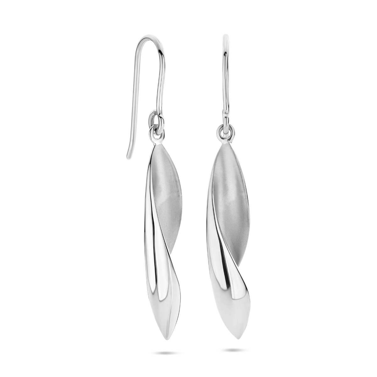 Gerhodineerd 925 zilveren oorhangers met franse haak uitgevoerd in poli/mat. De oorhangers hebben een totale hoogte van 45mm en de hanger heeft een afmeting van 33x6.5mm.