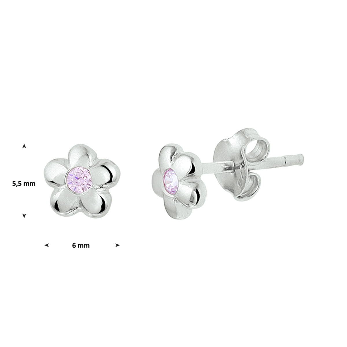 Beschrijving: Schattige gerhodineerd zilveren bloem oorknoppen met een afmeting van 5.5x6mm. Uitgevoerd met roze zirkonia en een stevige poussette sluiting. Tip: Leuk om kado te geven! Info: Gerhodineerd zilver is door de rhodiumlaag beter bestand tegen verkleuren en krassen.