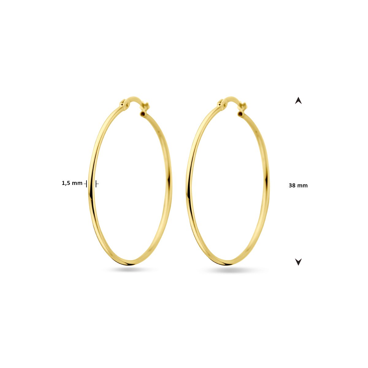 14k Geelgouden oorringen. De oorringen hebben een afmeting van 38x1.5mm.