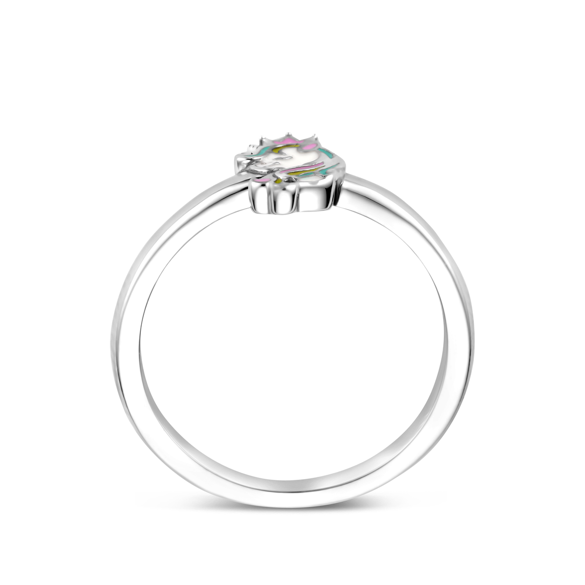 Gerhodineerd 925 ring uitgevoerd met een eenhoorn. De ring heeft een afmeting van 7.5x5mm.