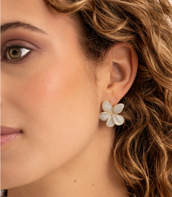 Oorbellen | Flora Push Back Oorbellen Goud - CZ